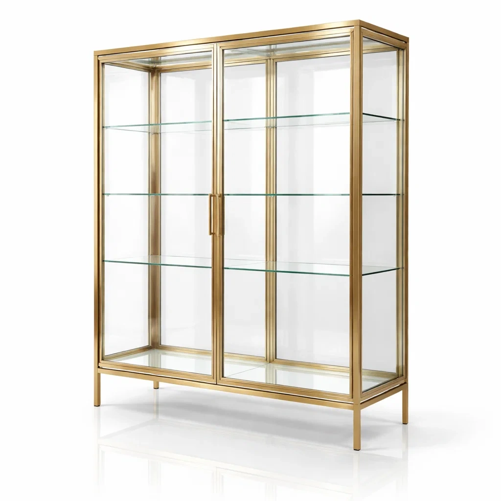 Vitrine aus gehärtetem glas mit metallrahmen gold 200 cm x 120 cm x 40 cm