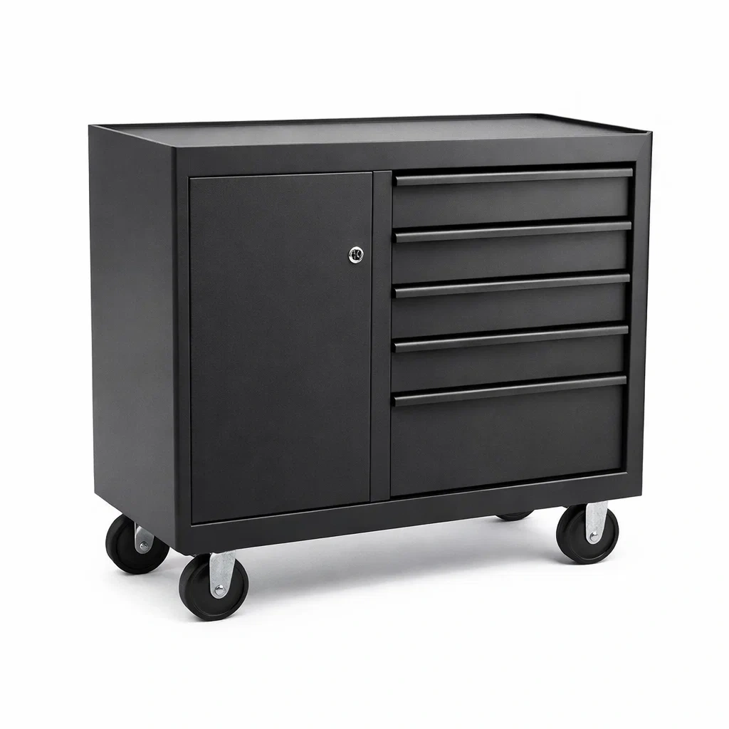 Werkzeugschrank stahl werkzeugwagen schwarz mit 5 schubladen und tür 100 x 50 x 90 cm