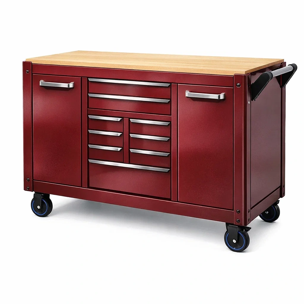 Werkzeugschrank stahl werkzeugwagen mit holzarbeitsplatte und 9 schubladen rot