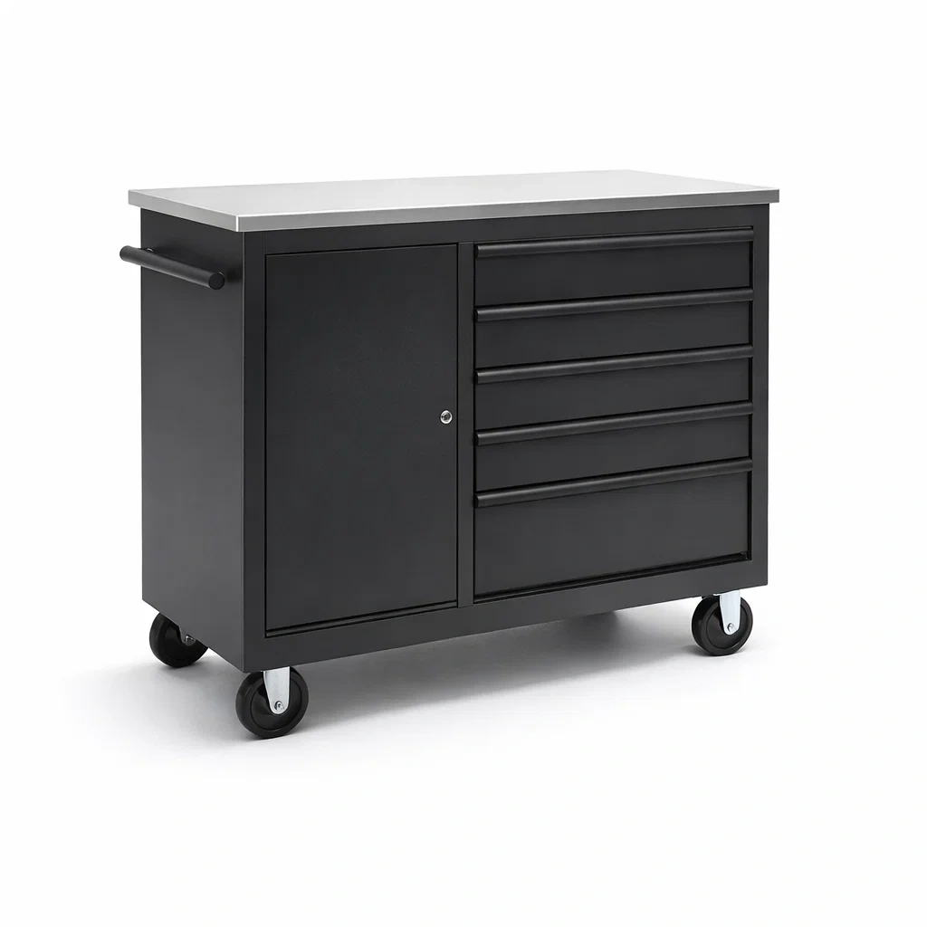 Werkzeugschrank werkzeugwagen aus stahl mit 5 schubladen und tür, schwarz, 106 x 46 x 80 cm