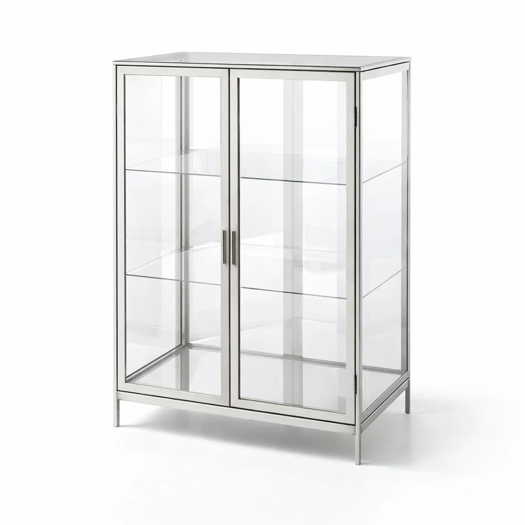 Vitrine glas aus edelstahl, silber, 80 cm x 40 cm x 120 cm